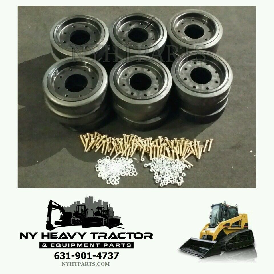 This Listing is for ** SIX ** 10" Wheel Group Bogie Kit with Hardware. Fits multiple machines. Enough to complete six bogie axles. Includes 12 Outer 6 Inner Splits and Hardware. Compatible with machines listed below. If you aren't sure if this will fit your machine, please give us a call or send us a message. We answer late and on weekends. Our stock now consists of many CAT Multi-Terrain Loader Undercarriage parts ( Rubber Tracks, Idler Wheels , Bogie Wheels, Complete Idler & Bogie Axles, Sprocket Inner & Outer Sleeves with Hardware, Drive Motors, Squirrel Cage Bearing Updates & More ) Take a look at our other items for sale. If you are looking for something we don't show listed please message us. Good Luck.